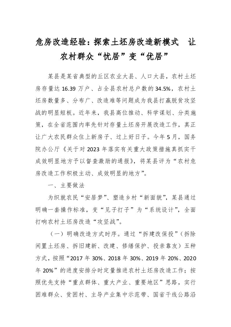 / 危房改造经验:探索土坯房改造新模式 让农村群众“忧居”变“优居”