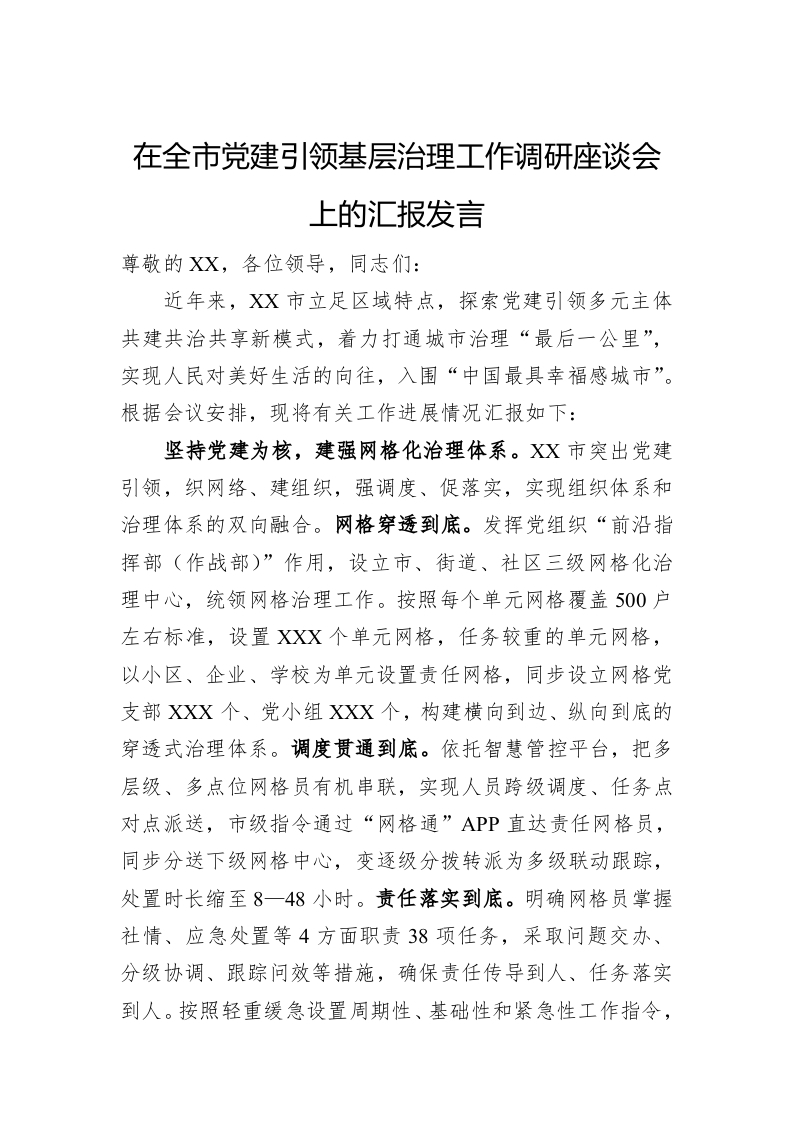 / 在全市党建引领基层治理工作调研座谈会上的汇报发言