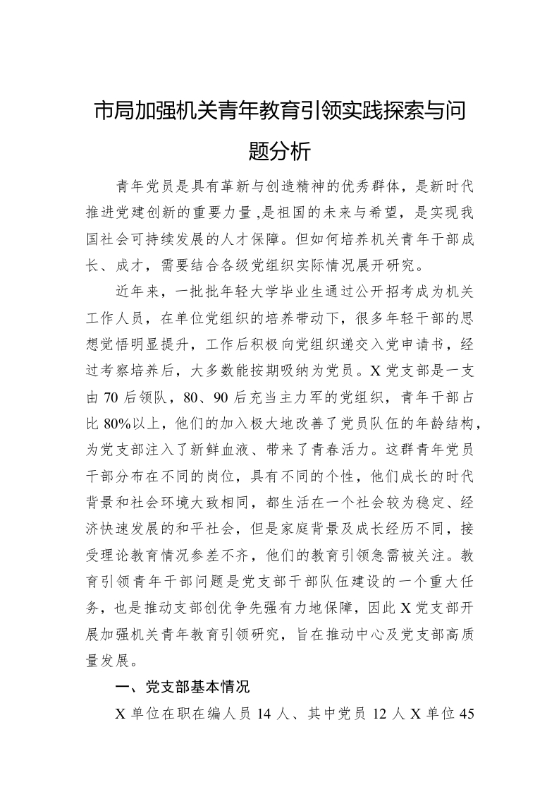 / 市局加强机关青年教育引领实践探索与问题分析