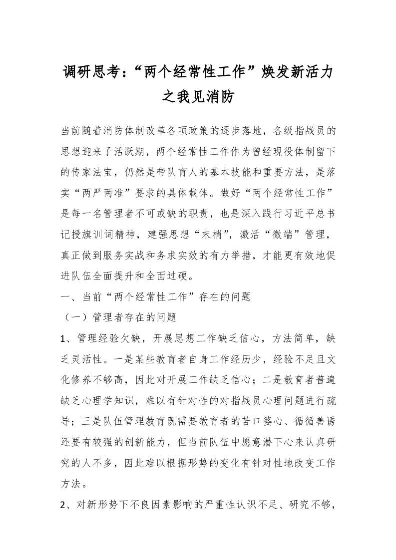 / 调研思考:“两个经常性工作”焕发新活力之我见消防