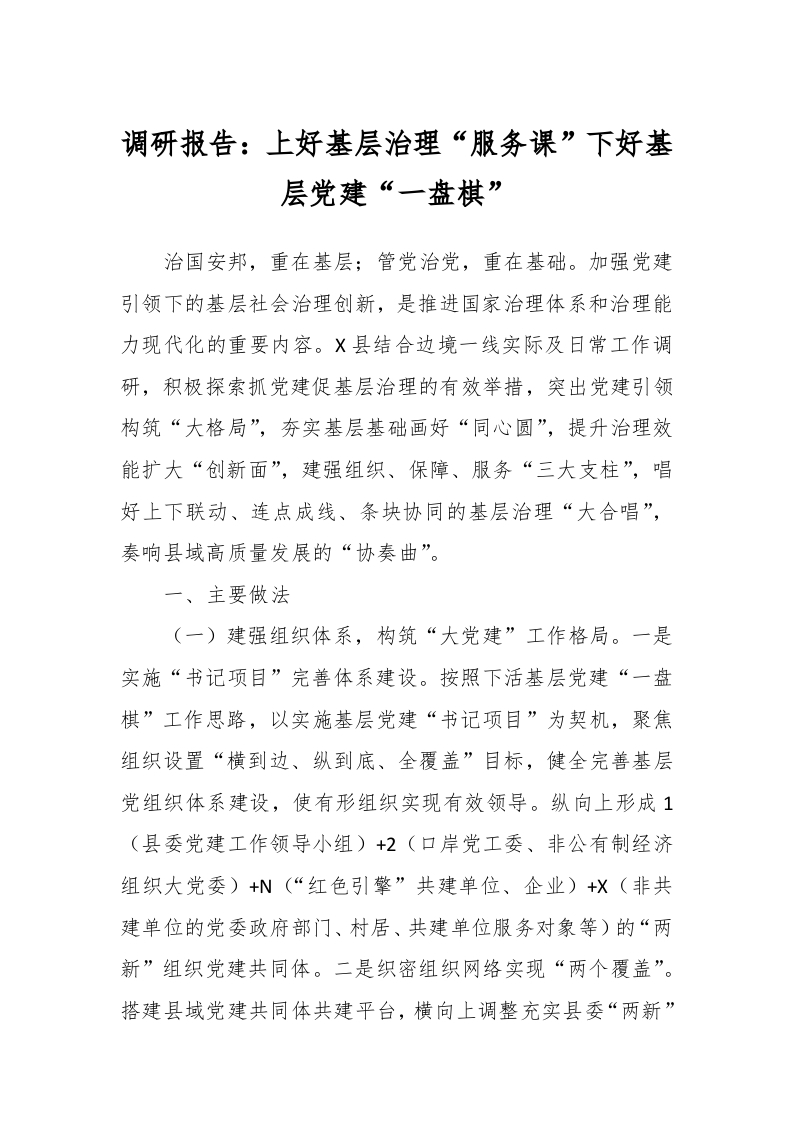 / 调研报告:上好基层治理“服务课”下好基层党建“一盘棋”