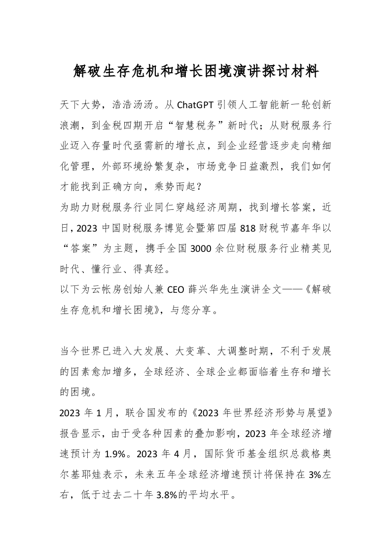 / 解破生存危机和增长困境演讲探讨材料