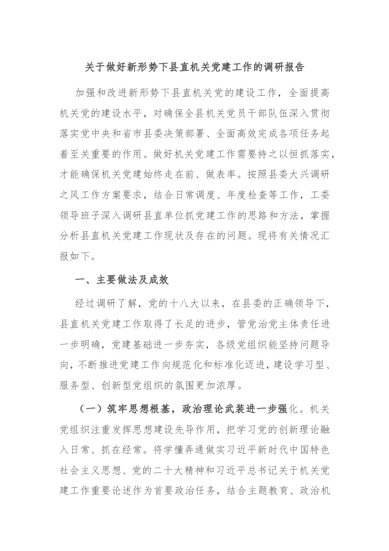 关于做好新形势下县直机关党建工作的调研报告
