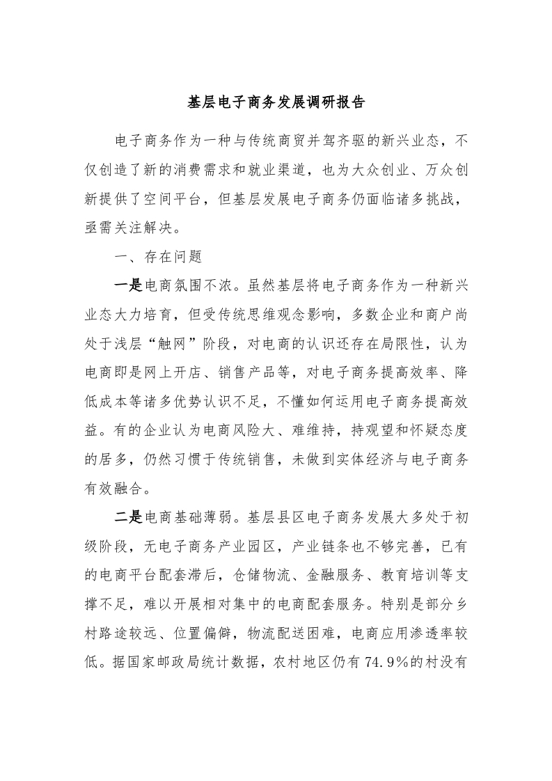 / 基层电子商务发展调研报告