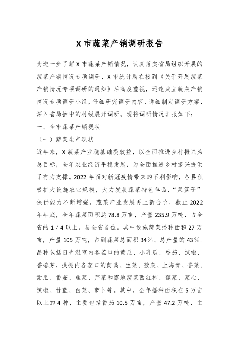 / X市蔬菜产销调研报告