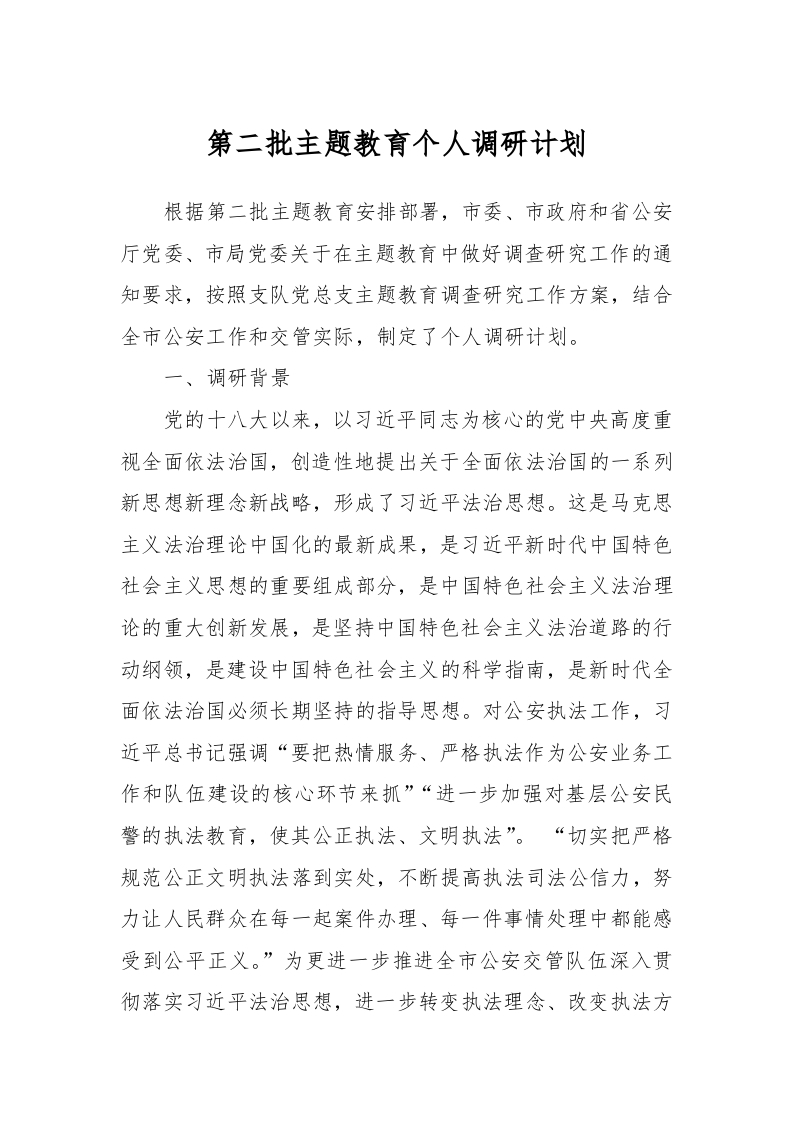 / 第二批主题教育个人调研计划
