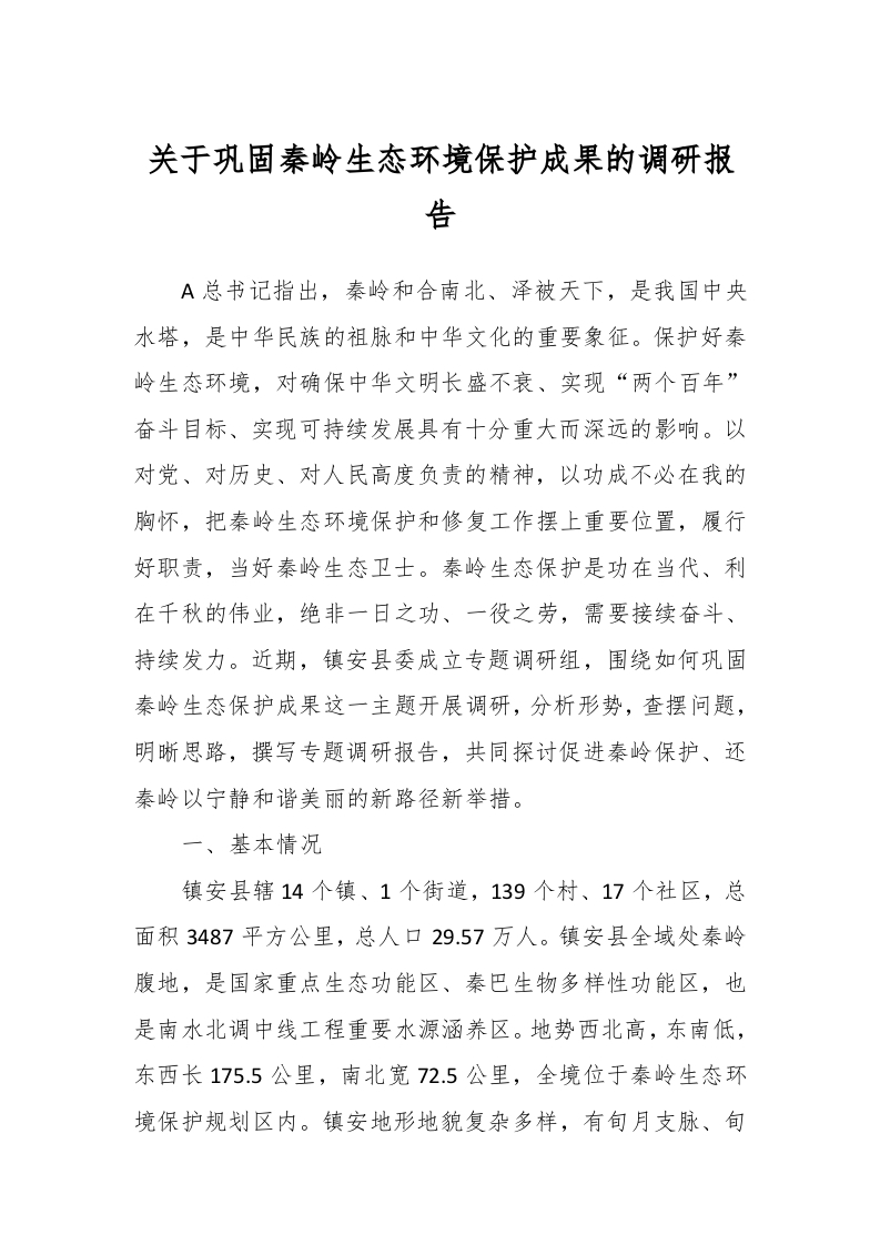 / 关于巩固秦岭生态环境保护成果的调研报告