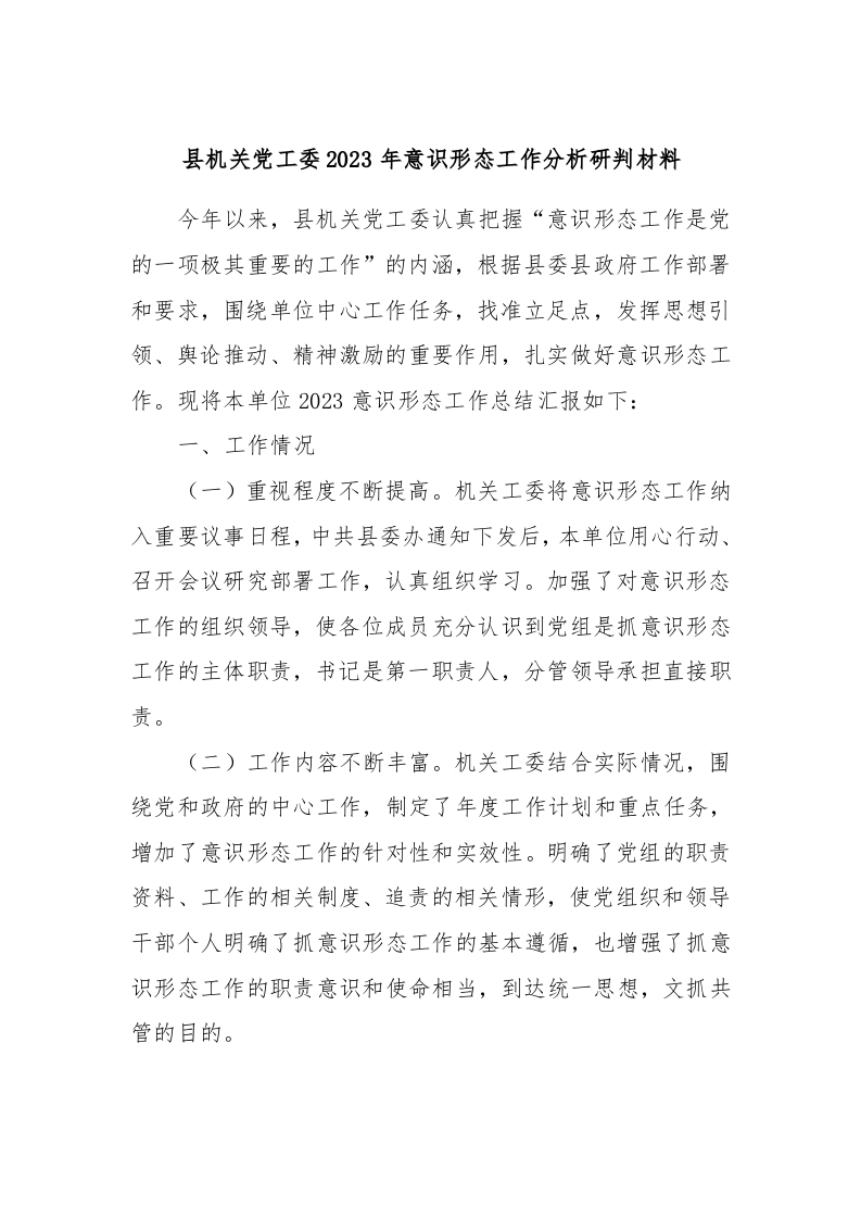 / 县机关党工委2023年意识形态工作分析研判材料