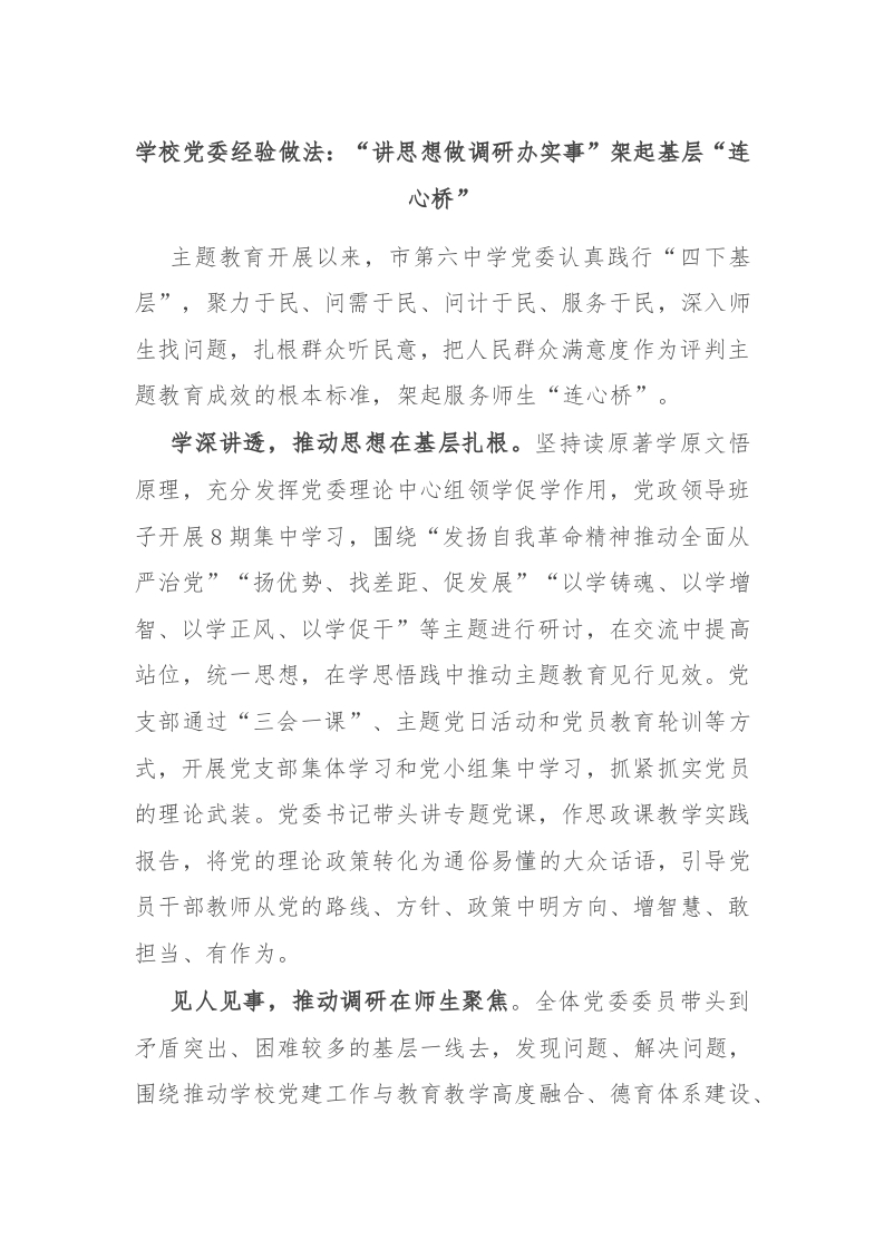 学校党委经验做法:“讲思想 做调研 办实事” 架起基层“连心桥”