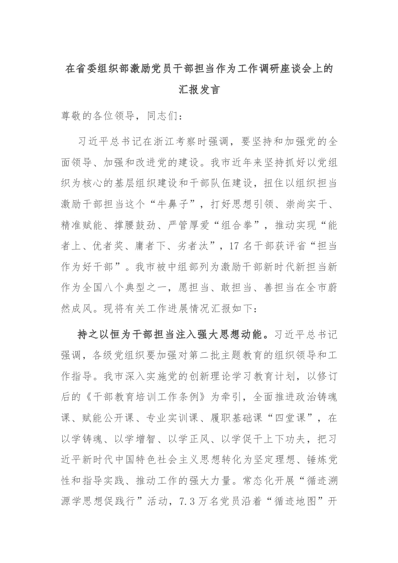 / 在省委组织部激励党员干部担当作为工作调研座谈会上的汇报发言