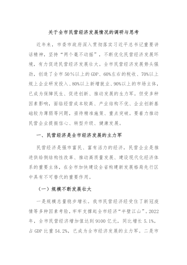 / 关于全市民营经济发展情况的调研与思考