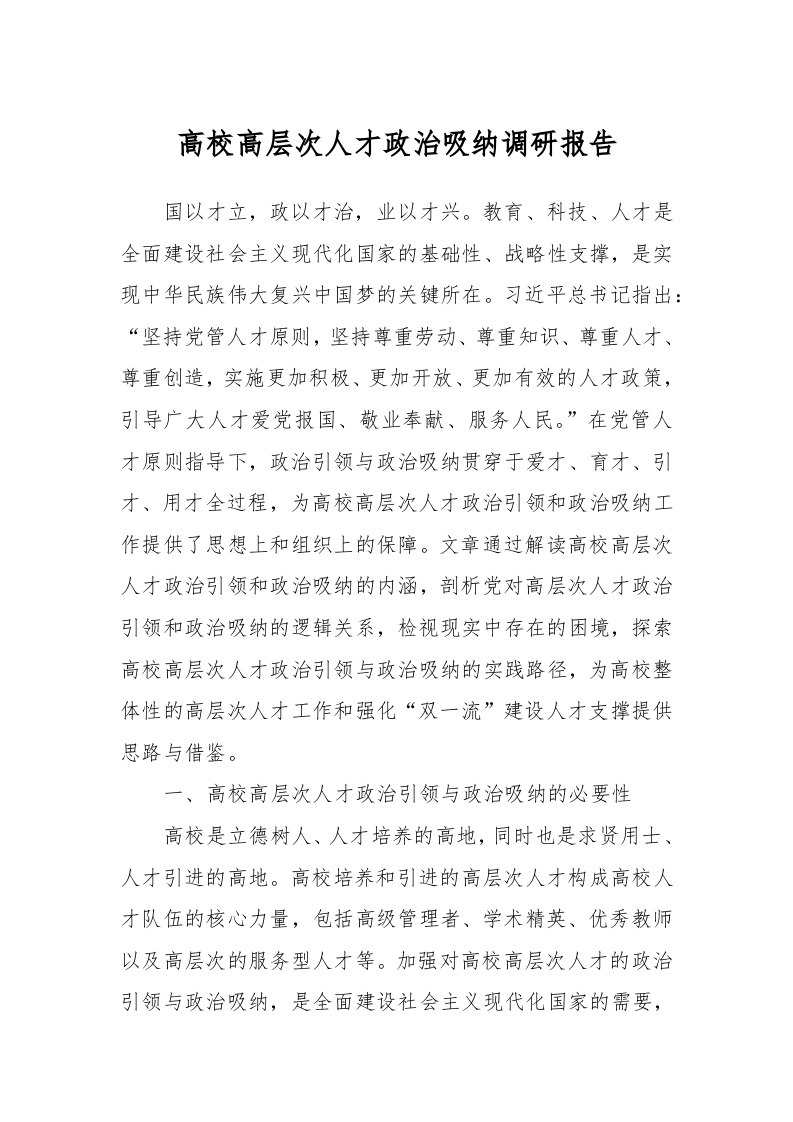 / 高校高层次人才政治吸纳调研报告