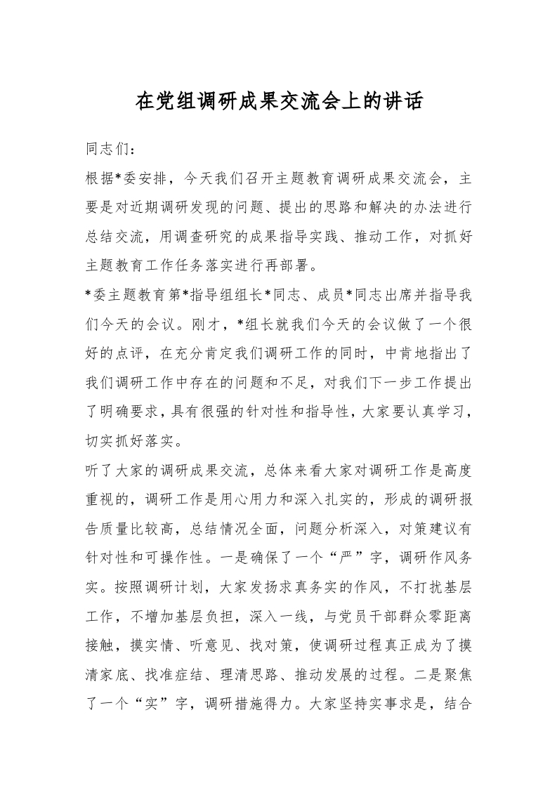 / 在党组调研成果交流会上的讲话