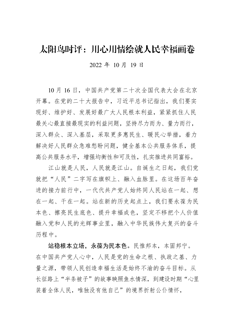 / 太阳鸟时评:用心用情绘就人民幸福画卷