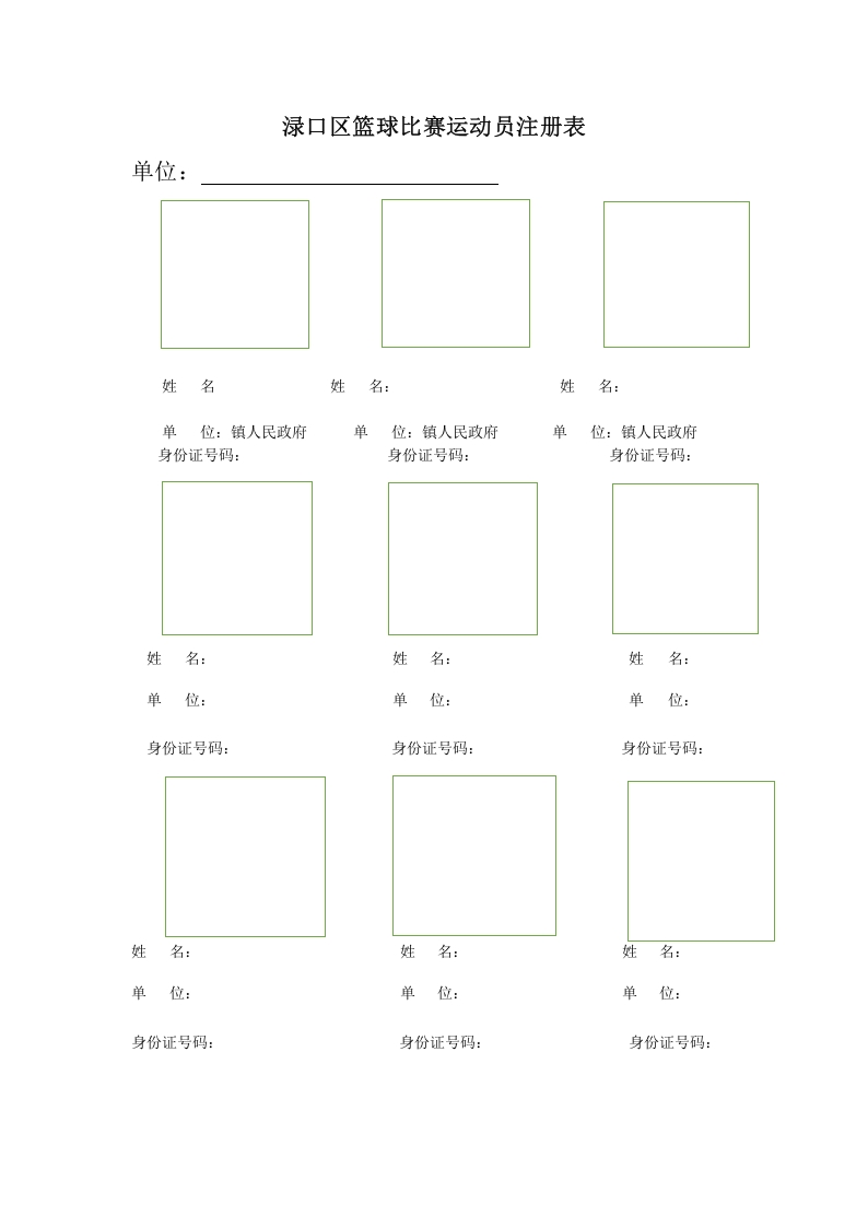 / 渌口区首届篮球球比赛运动员注册表