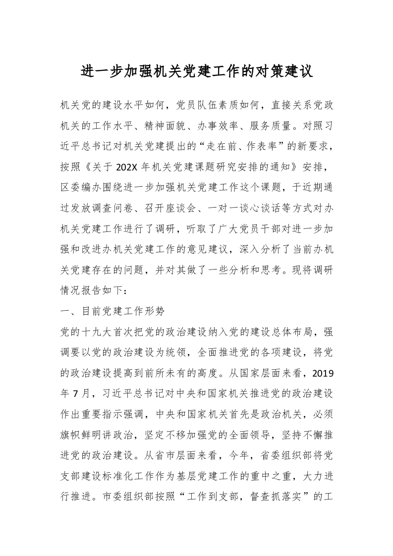 / 进一步加强机关党建工作的对策建议