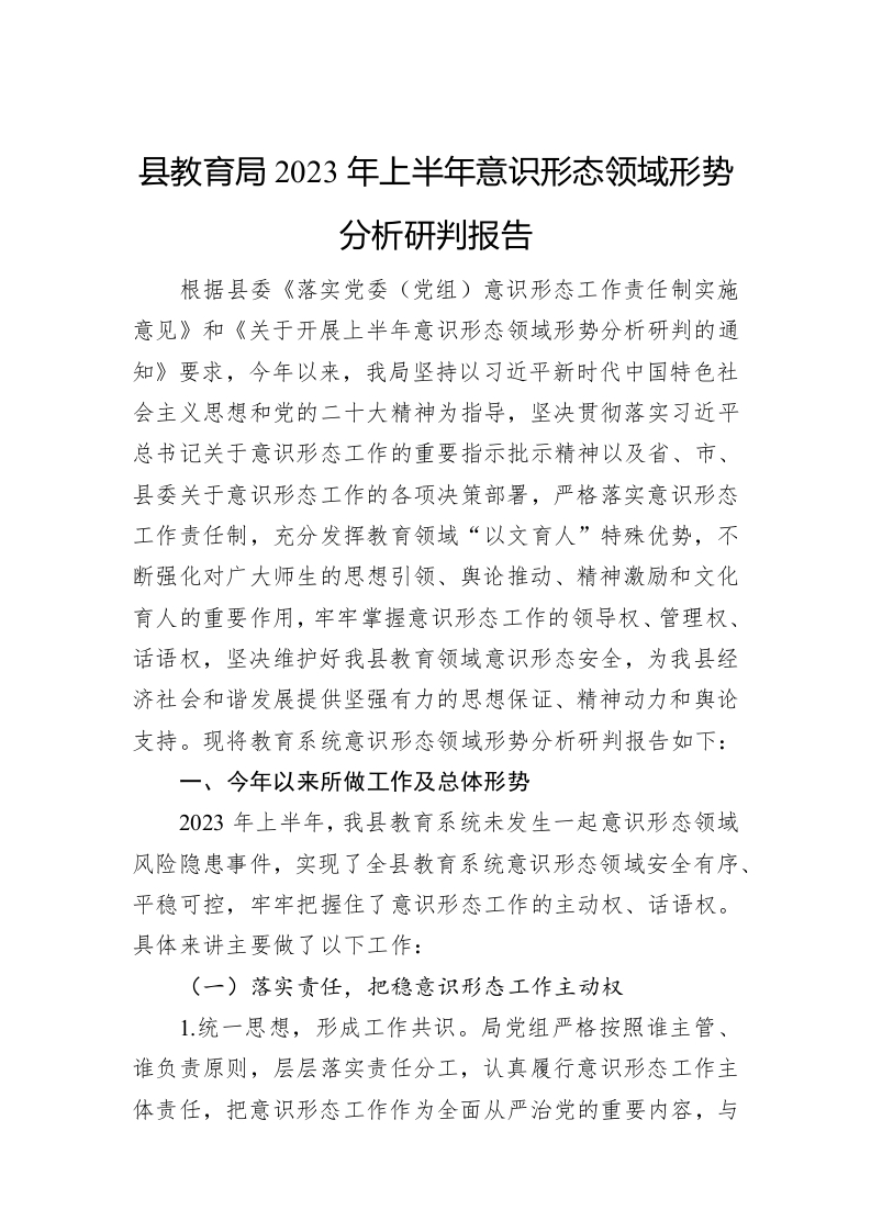 / 县教育局2023年上半年意识形态领域形势分析研判报告