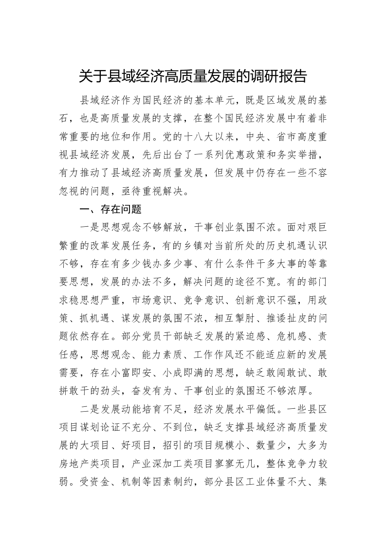 / 关于县域经济高质量发展的调研报告