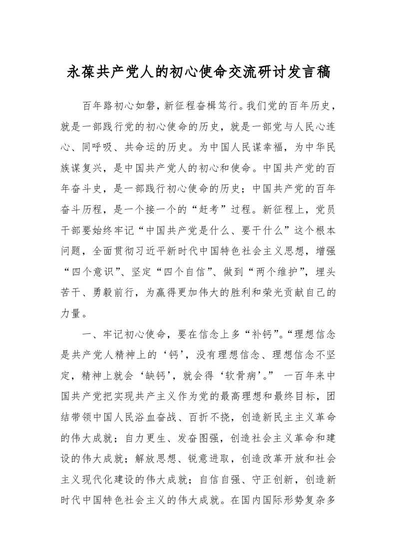 / 永葆共产党人的初心使命交流研讨发言稿