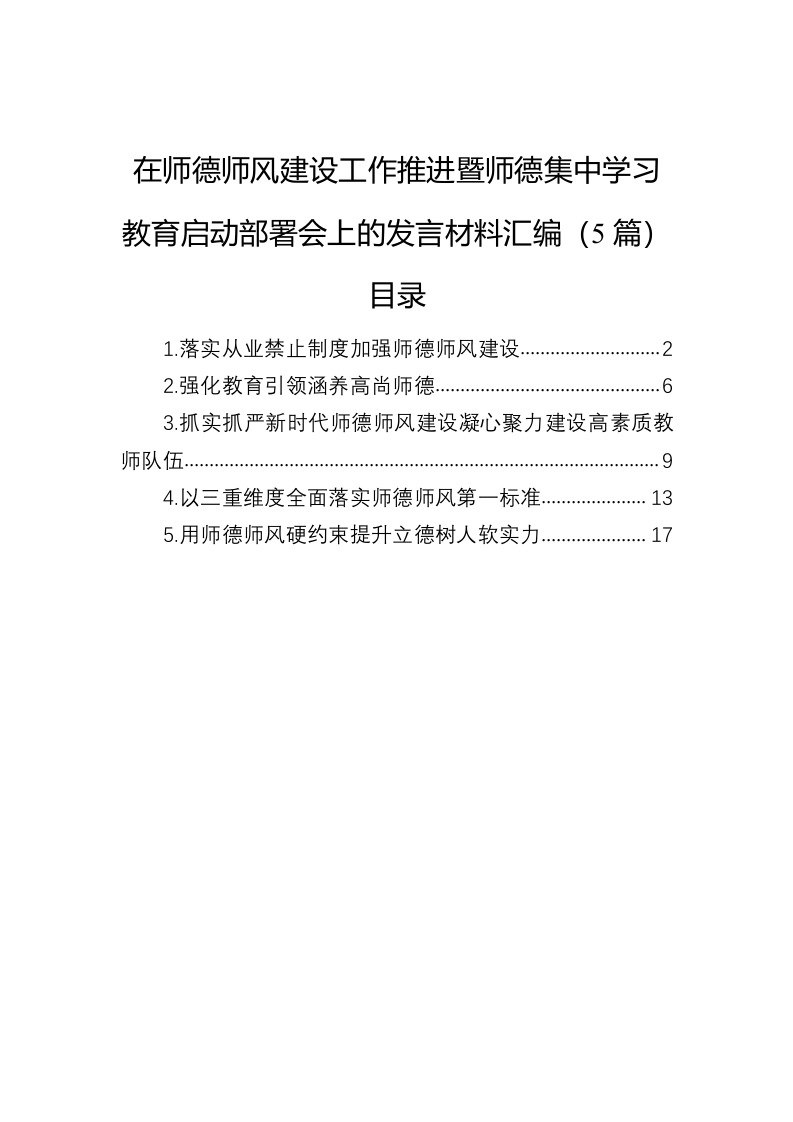 / 在师德师风建设工作推进暨师德集中学习教育启动部署会上的发言材料汇编(5篇)