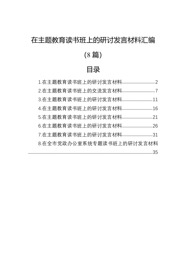 / 在主题教育读书班上的研讨发言材料汇编(8篇)
