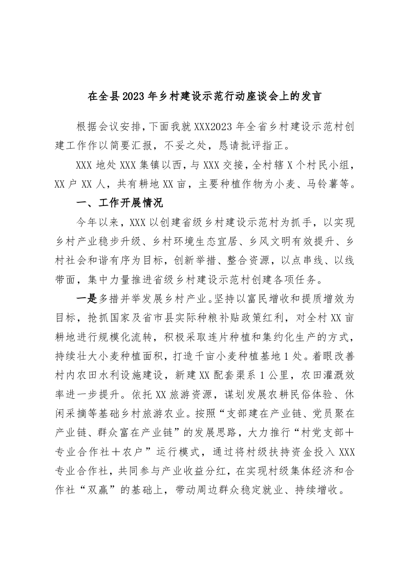 / 在全县2023年乡村建设示范行动座谈会上的发言