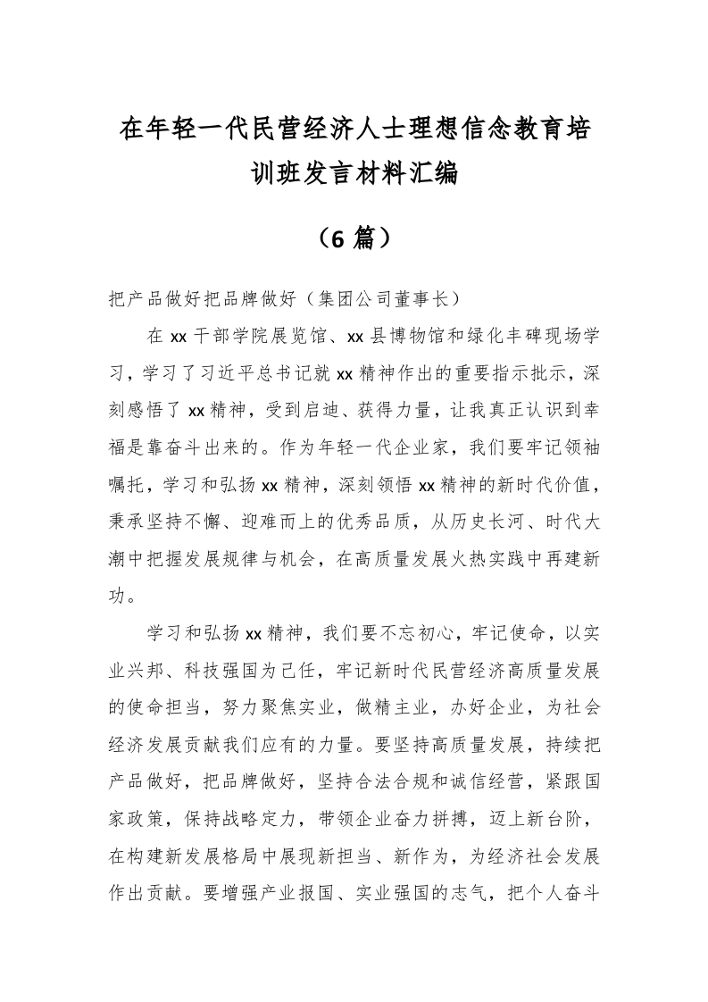/ (6篇)在年轻一代民营经济人士理想信念教育培训班发言材料汇编