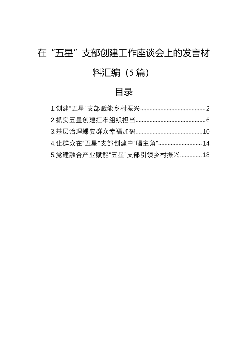 / 在“五星”支部创建工作座谈会上的发言材料汇编(5篇)