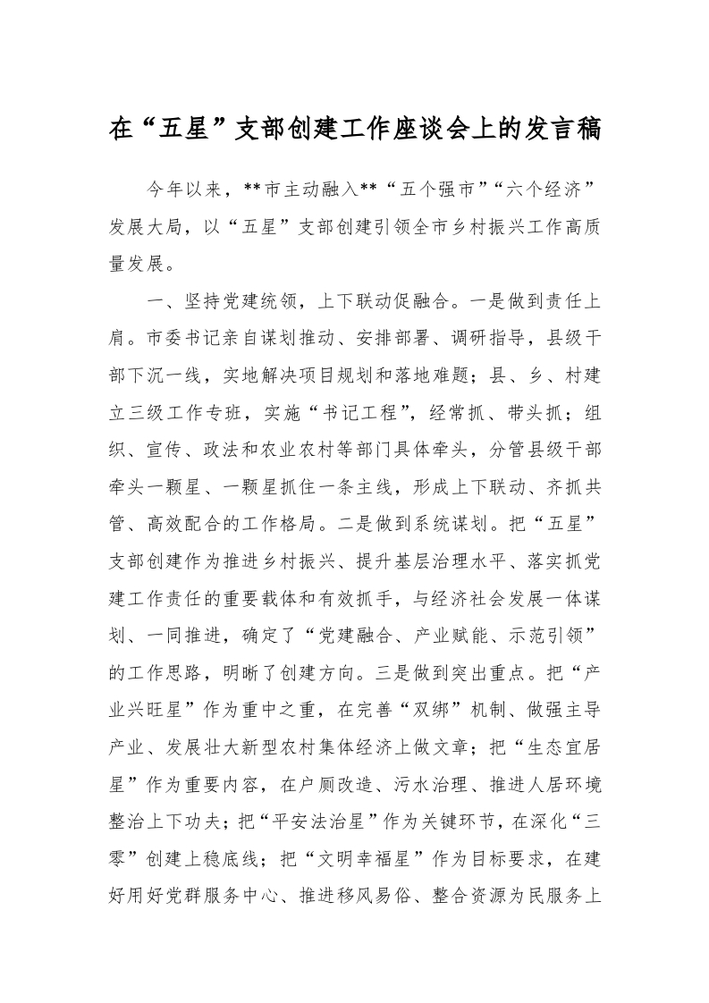 / 在“五星”支部创建工作座谈会上的发言稿