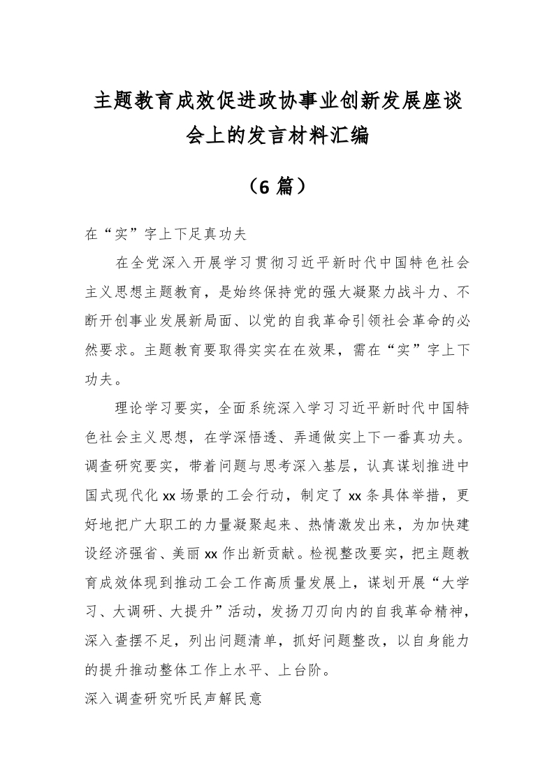 / (6篇)主题教育成效促进政协事业创新发展座谈会上的发言材料汇编