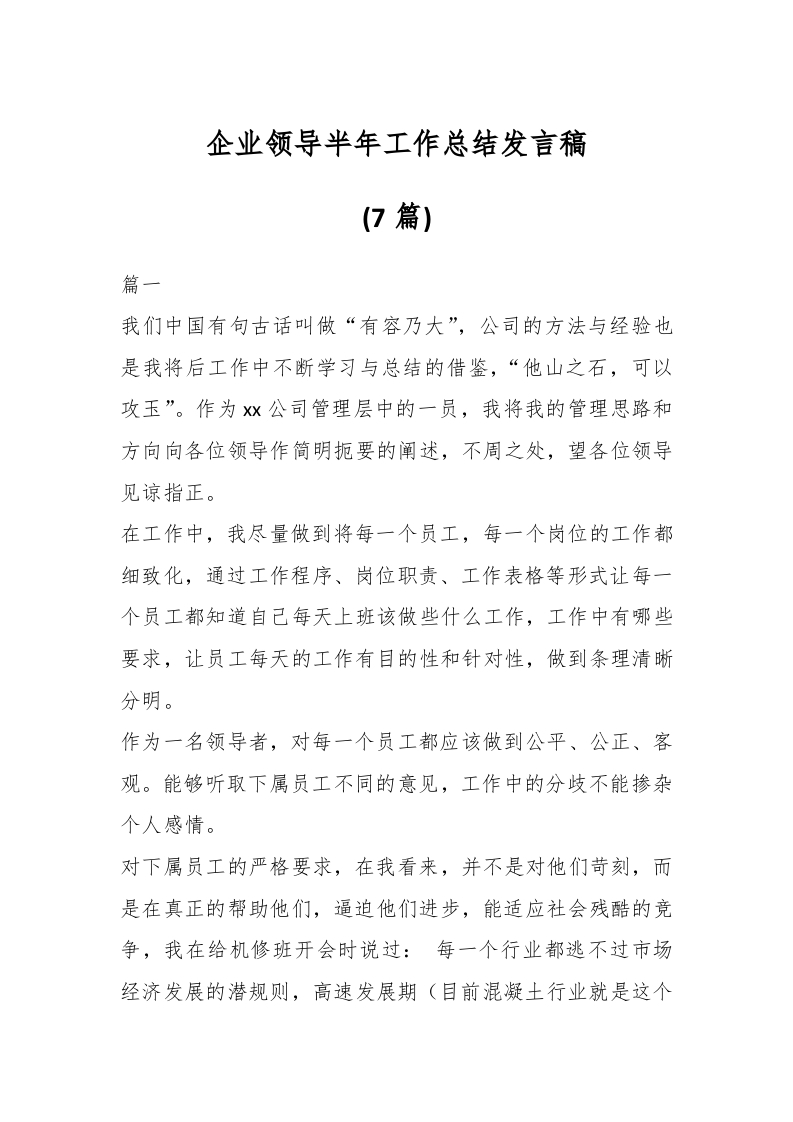 / (7篇)企业领导半年工作总结发言稿