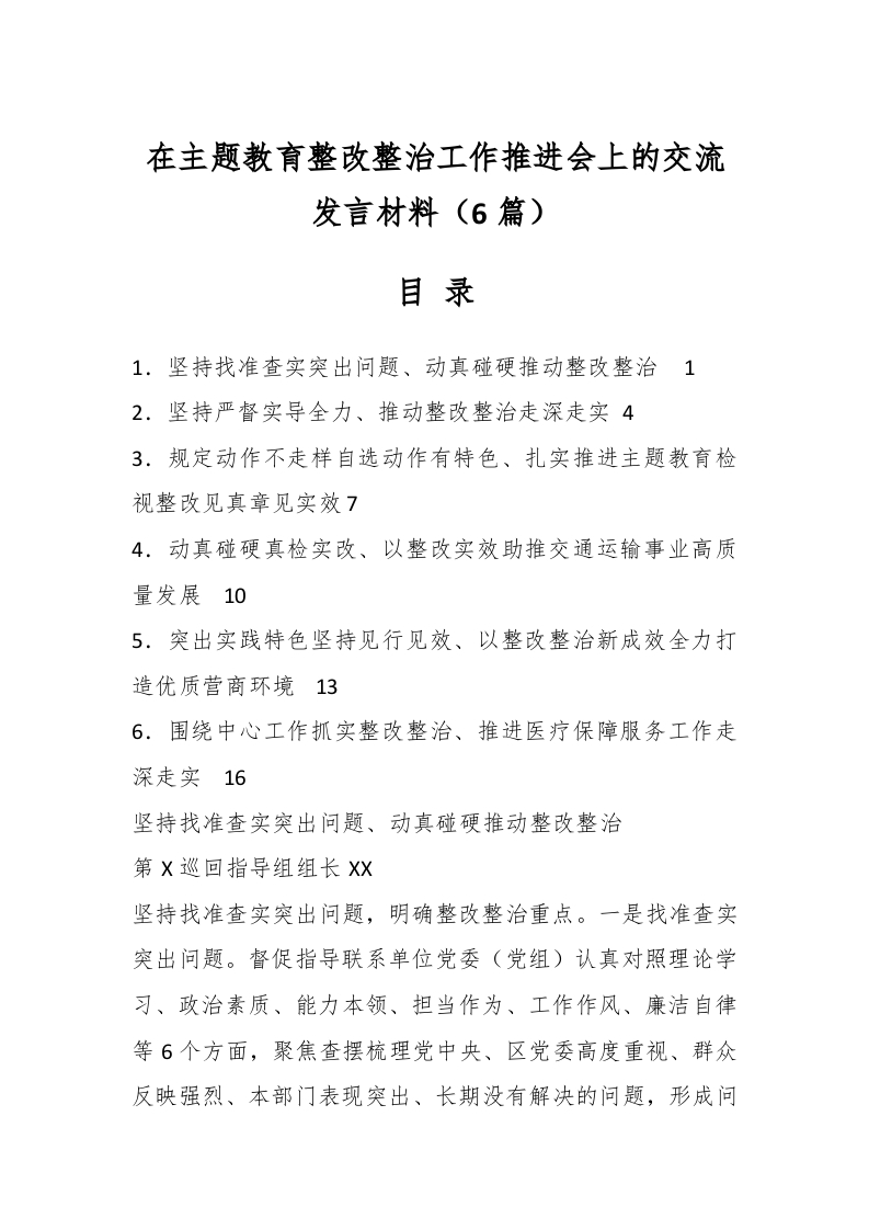 / (6篇)在主题教育整改整治工作推进会上的交流发言材料