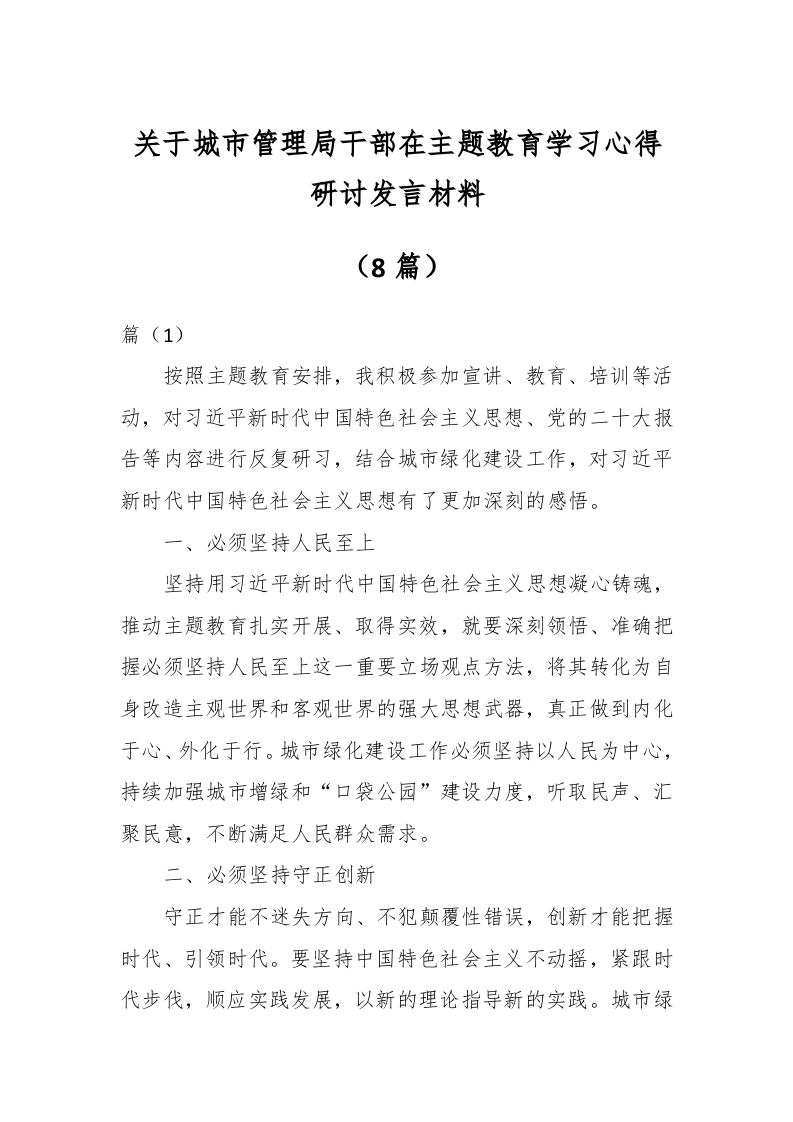 (8篇)关于城市管理局干部在主题教育学习心得研讨发言材料