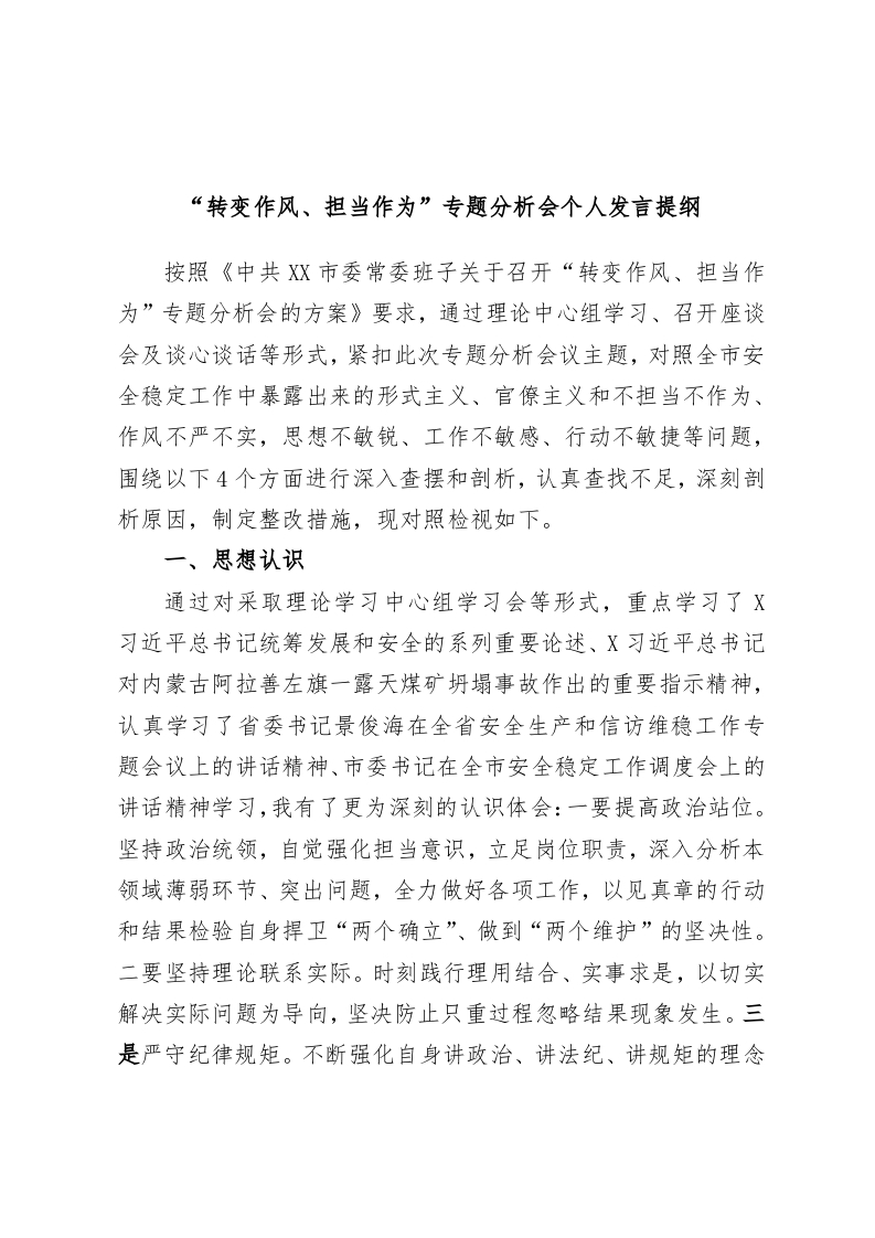 / “转变作风、担当作为”专题分析会个人发言提纲
