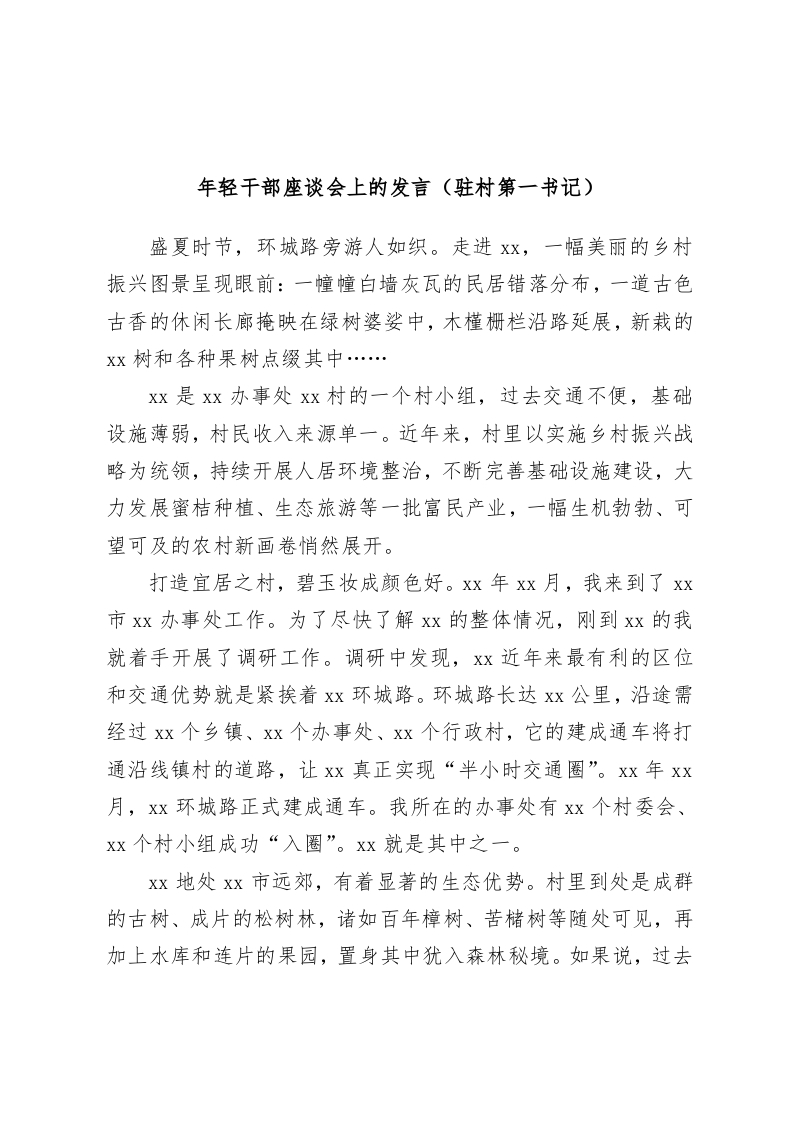 / 年轻干部座谈会上的发言(驻村第一书记)