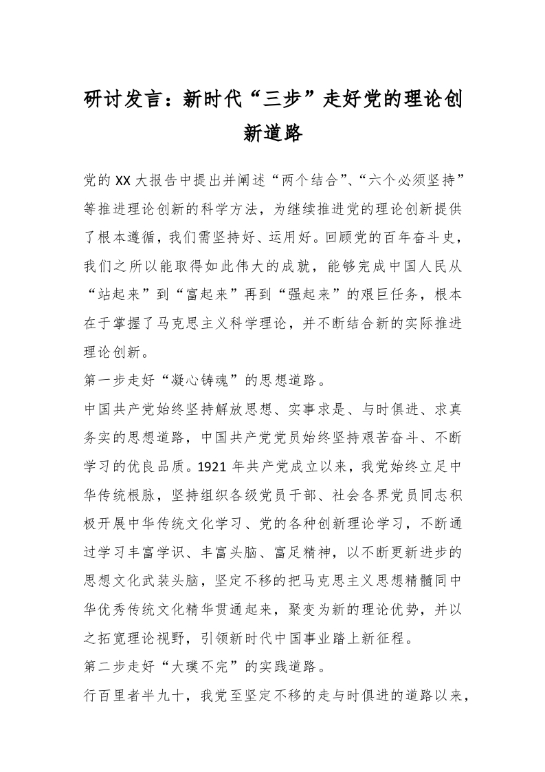 / 研讨发言:新时代“三步”走好党的理论创新道路