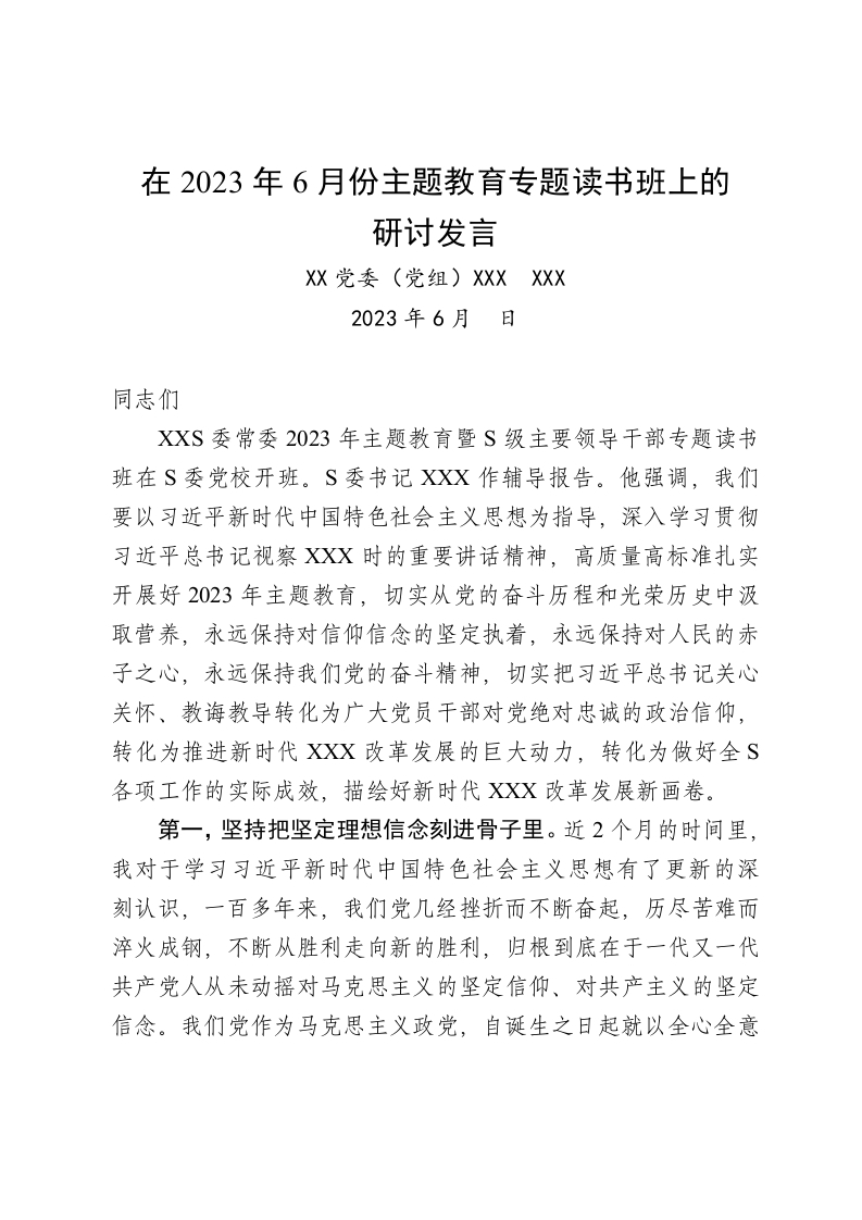 / 在2023年主题教育专题读书班上的研讨发言