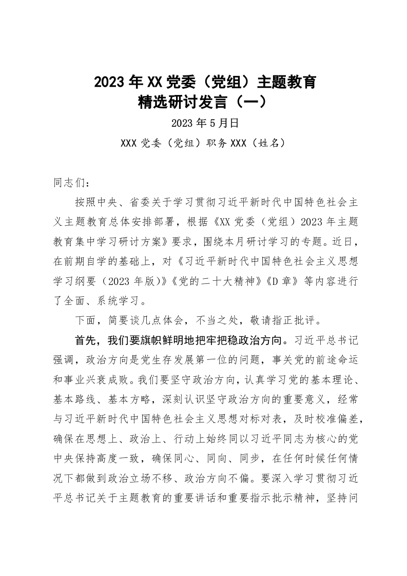2023年XX国企(集团)党委主题教育专题研讨发言