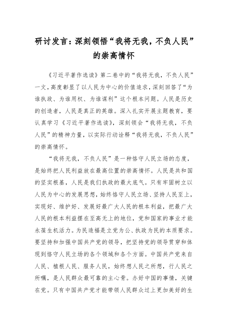 / 研讨发言:深刻领悟“我将无我,不负人民”的崇高情怀