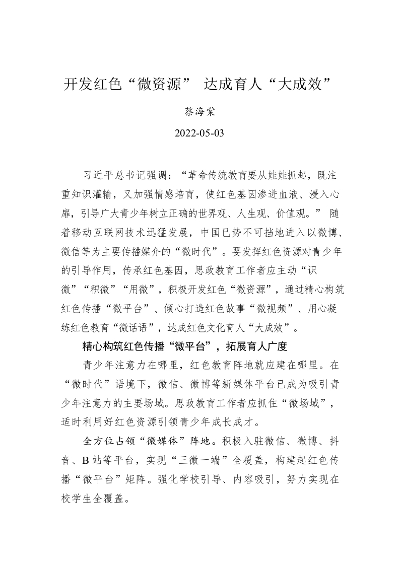 / 蔡海棠:开发红色“微资源” 达成育人“大成效”(20220503)