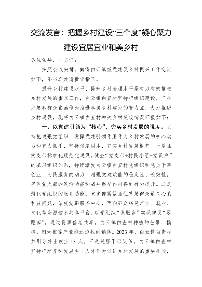 交流发言:把握乡村建设“三个度”+凝心聚力建设宜居宜业和美乡村