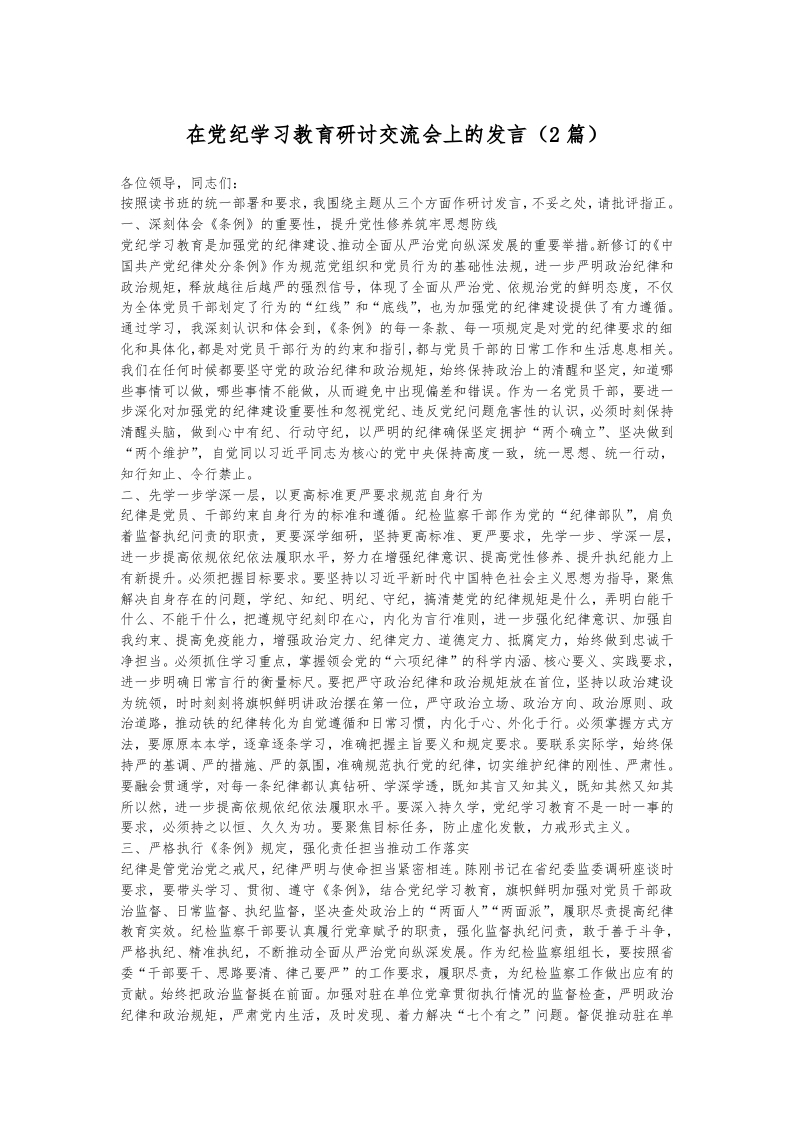 / (2篇)在党纪学习教育研讨交流会上的发言