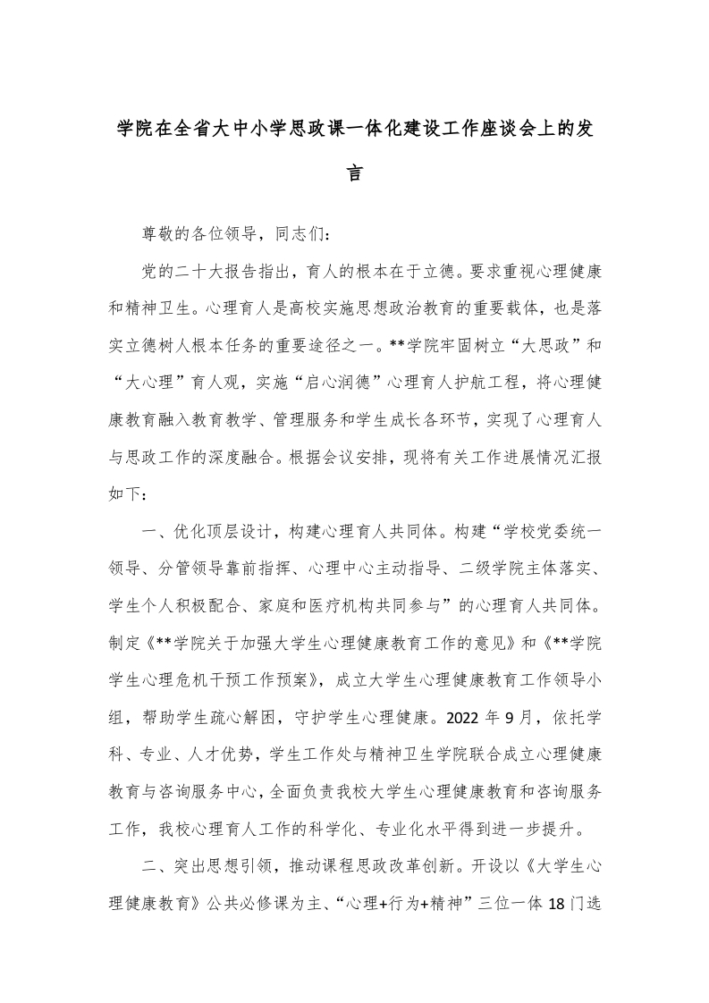 / 学院在全省大中小学思政课一体化建设工作座谈会上的发言