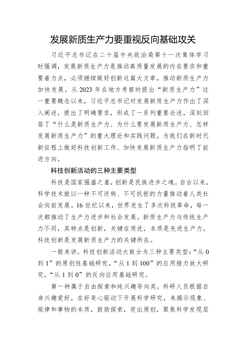 发展新质生产力要重视反向基础攻关