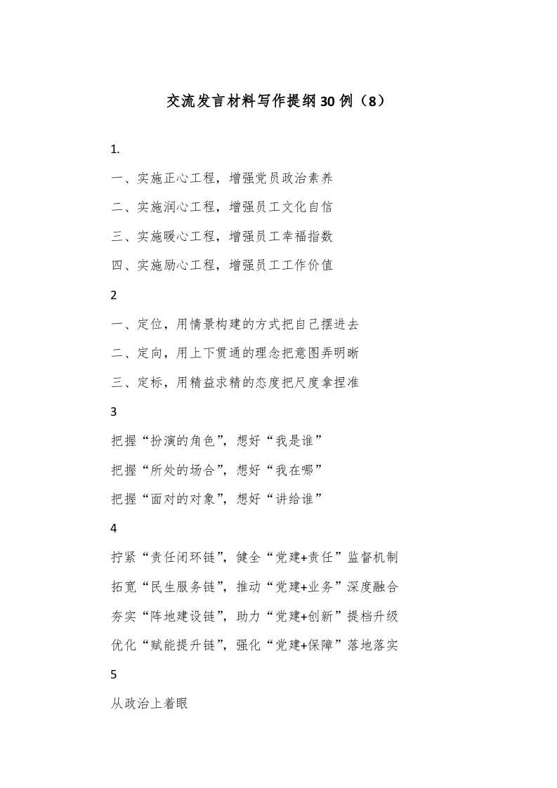 / 交流发言材料写作提纲30例(8)