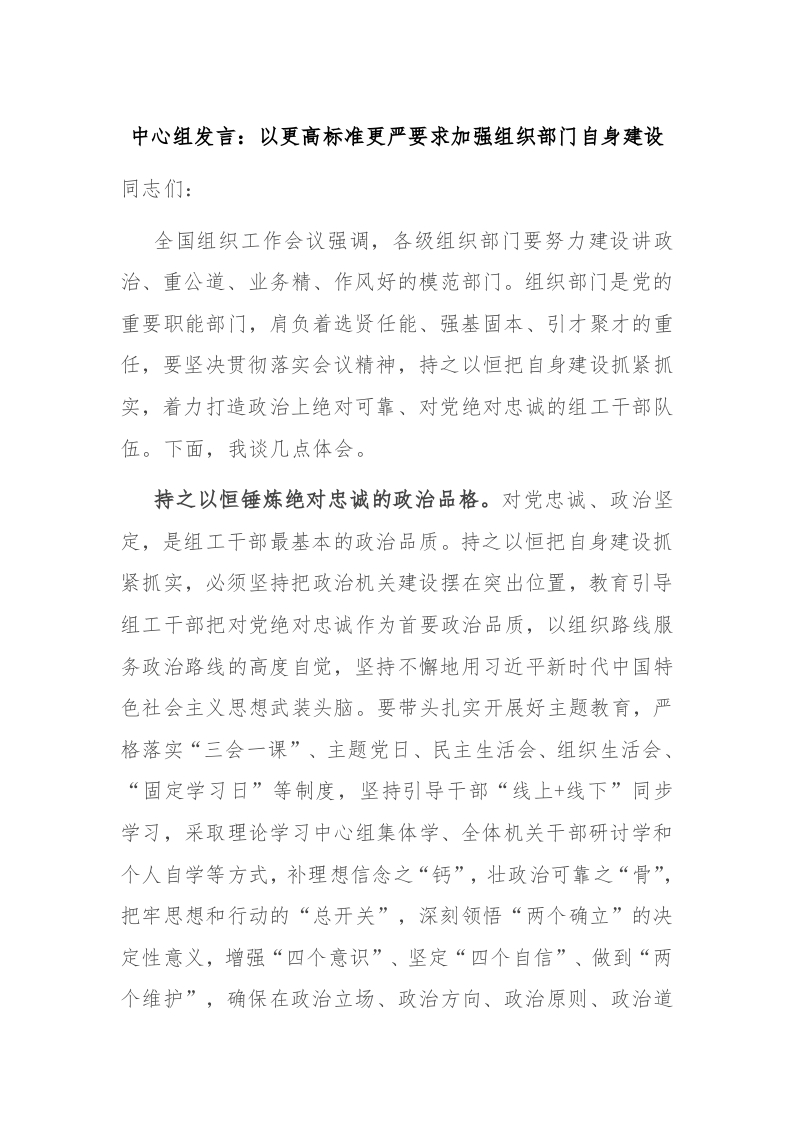 / 中心组发言:以更高标准更严要求加强组织部门自身建设