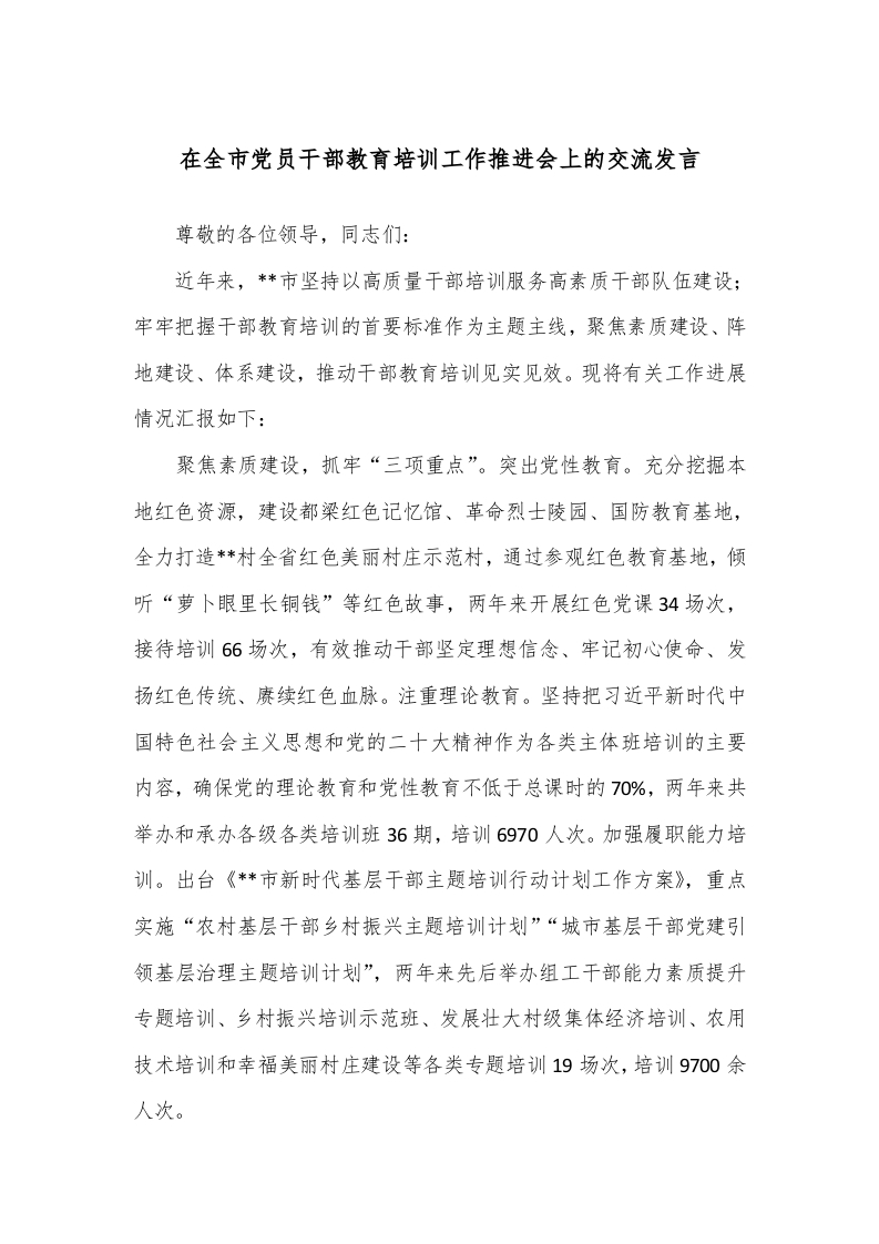 / 在全市党员干部教育培训工作推进会上的交流发言