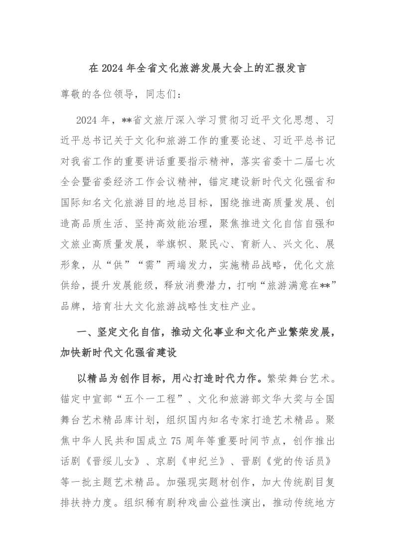 / 在2024年全省文化旅游发展大会上的汇报发言