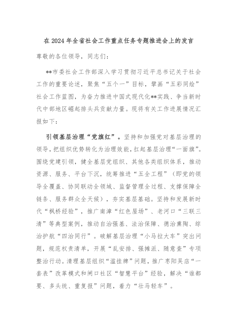 / 在2024年全省社会工作重点任务专题推进会上的发言