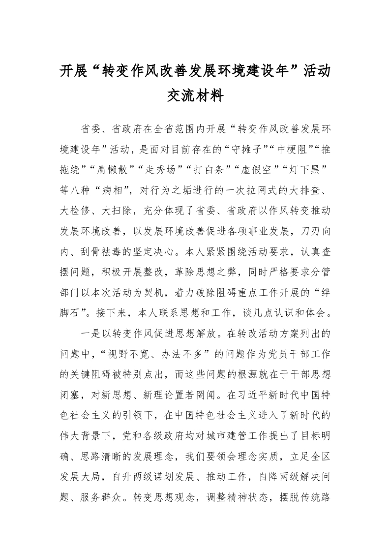 / 开展“转变作风改善发展环境建设年”活动交流材料